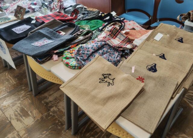 中1B 資料展示、高33回の羽山良子さんの作品展、同窓会グッズ販売、ワークショップ、同窓生アンケート、同窓会サテライト事務局